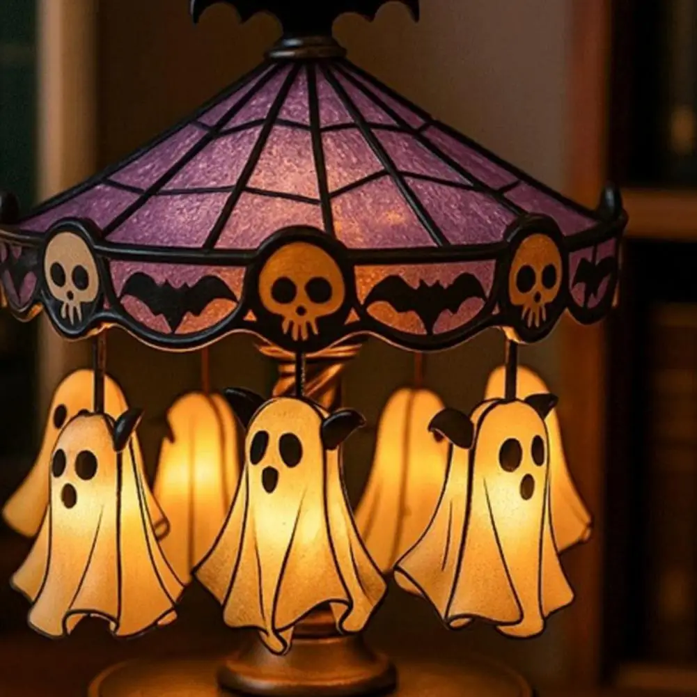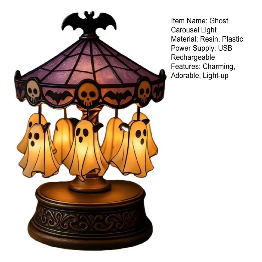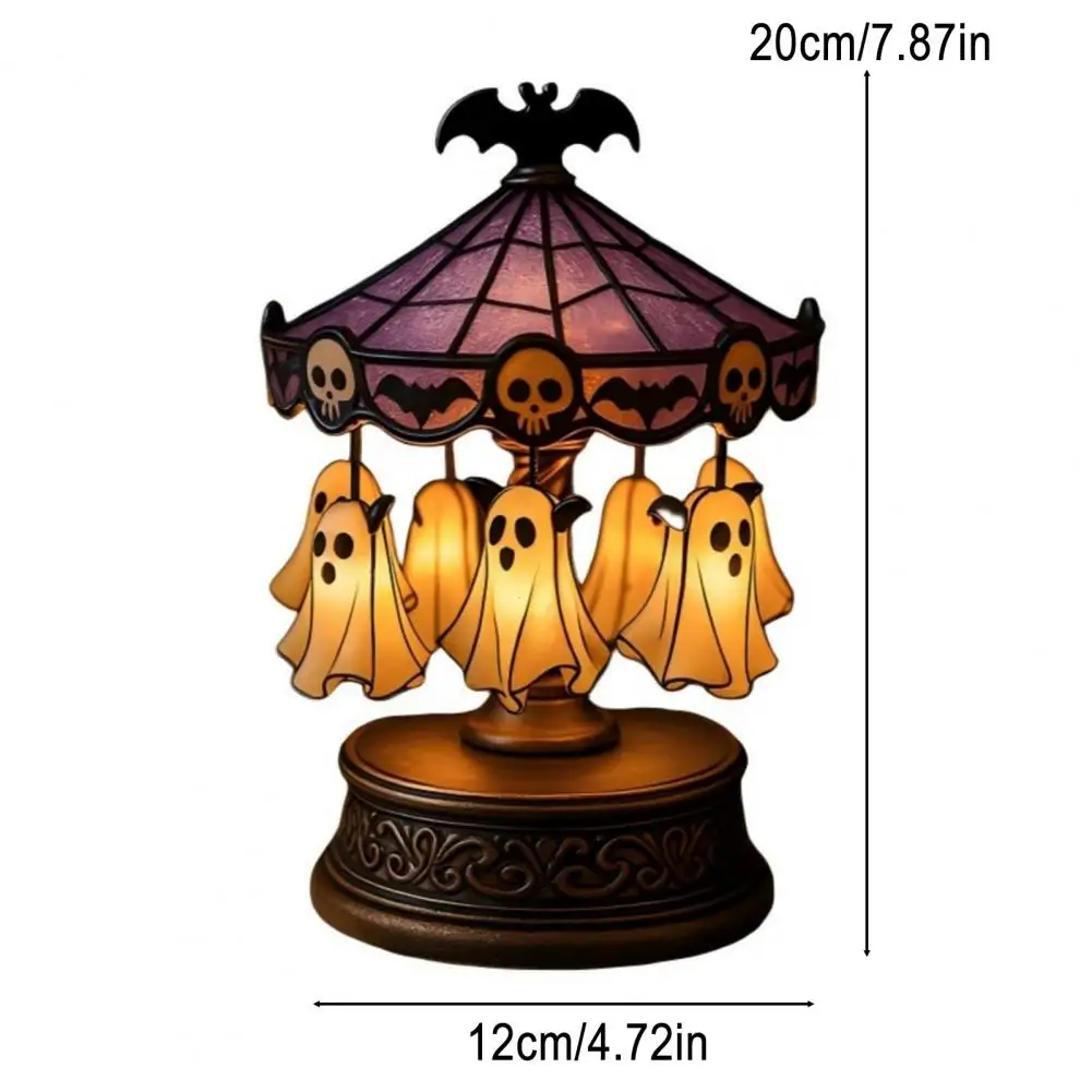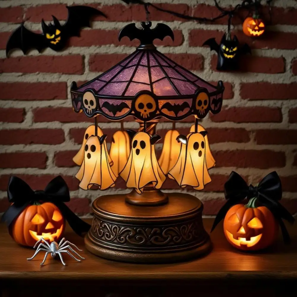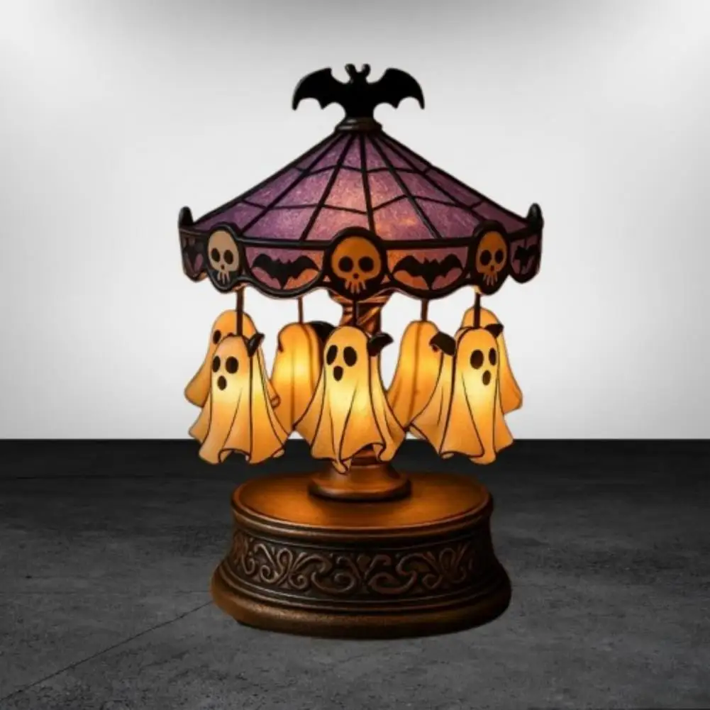 Imaginative Gift Idea Spooky Stained Glass Carousel Night Light with Floating Ghost Halloween Desk Lamp for Bedroom Decor Unique